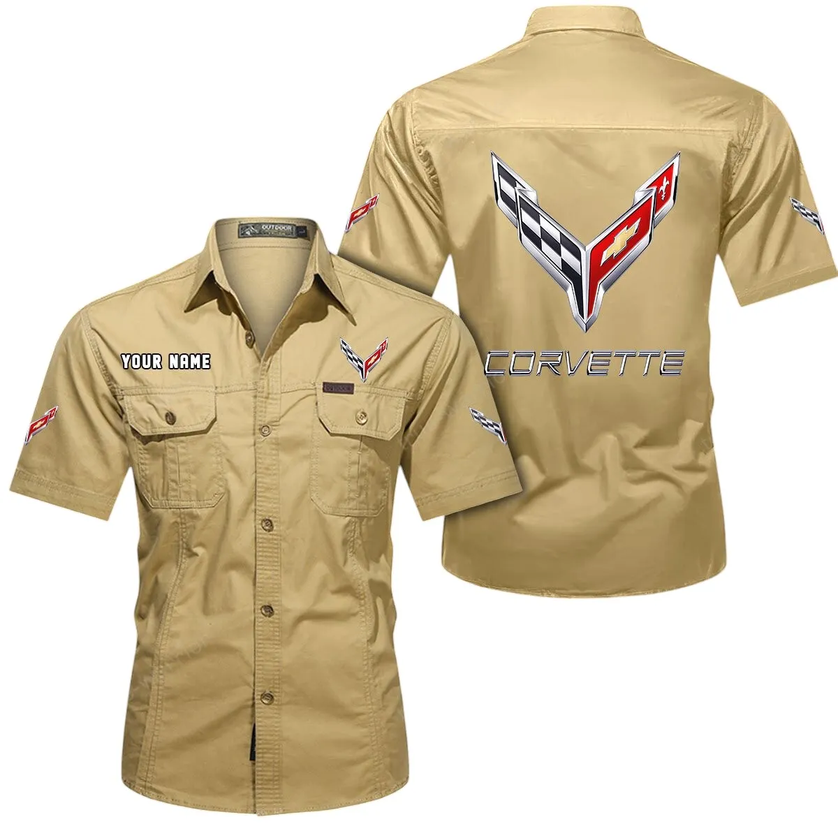 American Iconic Sports Car Exclusive Logo Short Sleeved Shirt, Gift For American Iconic Sports Car Enthusiasts CAR444 - Khaki American Iconic Sports Car Exclusive Logo Short Sleeved Shirt, Gift For American Iconic Sports Car Enthusiasts CAR444 - Khaki