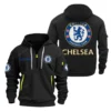 Athletic Half-Zip Hoodie, Team-Style Logo Print Hoodie Gift For Football Fans EPL280 - Black