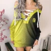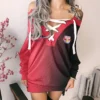 Show your passion with confidence and flair in this V-Neck Lace-Up Pullover Sweatshirt Dress – a must-have for fashion-forward women who love sporty style. Perfect for casual outings, watch parties, or laid-back weekends, this long sweatshirt dress blends athletic attitude with feminine charm, making it a standout piece in any wardrobe.