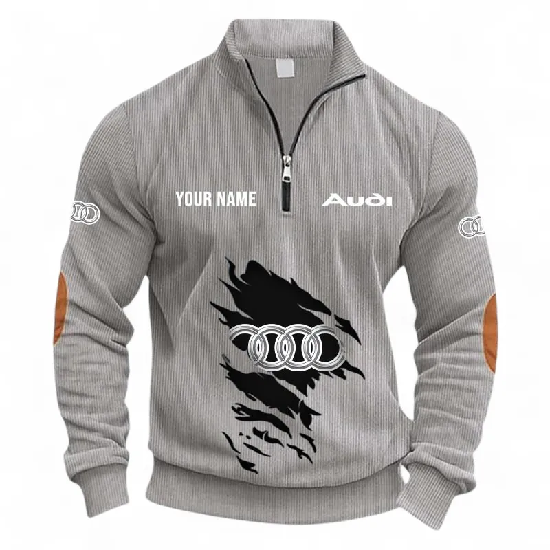 Luxury Car Half Zipper Corduroy Sweatshirt CAR491 - Light Gray Luxury Car Half Zipper Corduroy Sweatshirt CAR491 - Light Gray