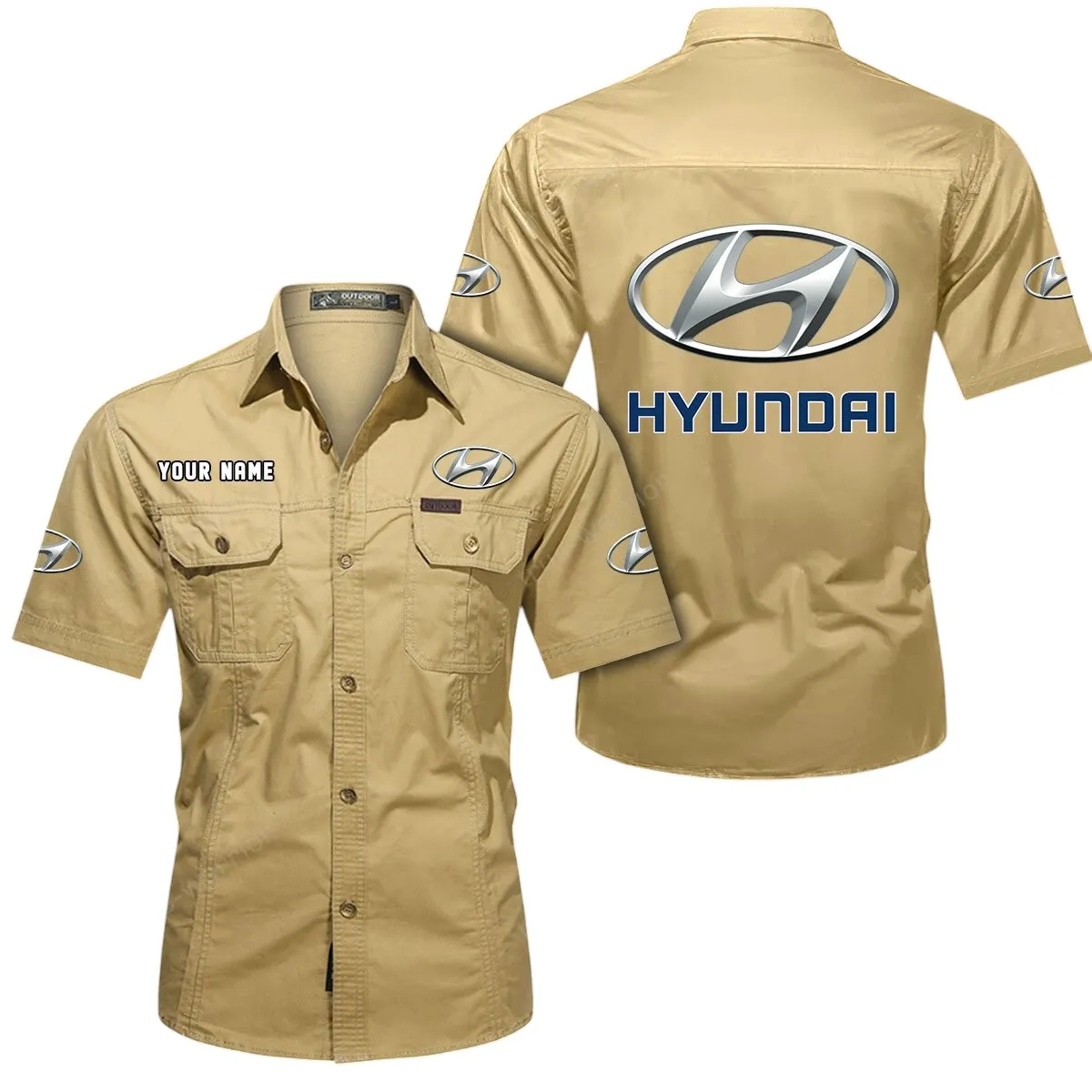 Small City Car  Exclusive Logo Short Sleeved Shirt, Gift For Small City Car  Enthusiasts CAR444 - Khaki Small City Car Exclusive Logo Short Sleeved Shirt, Gift For Small City Car Enthusiasts CAR444 - Khaki