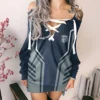 Show your passion with confidence and flair in this V-Neck Lace-Up Pullover Sweatshirt Dress – a must-have for fashion-forward women who love sporty style. Perfect for casual outings, watch parties, or laid-back weekends, this long sweatshirt dress blends athletic attitude with feminine charm, making it a standout piece in any wardrobe.